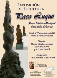Exposición Esculturas 14 de noviembre de 2025 - 11 de enero de 2026 08:00 - 17:00 Santaella + Google Map Museo Histórico Municipal Casa de las Columnas +34 957 31 39 31 +34 957 31 39 31 turismo@santaella.es Santaella