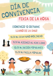 Actividades para todas las edades: desayuno molinero, concursos de juegos populares, partidas de ajedrez al aire libre con el Club de Ajedrez “Torre de Ipagro”, y una gran paella de convivencia.