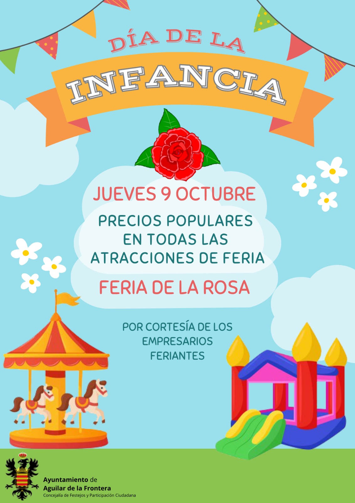 – Jueves 9 de octubre — Día de la Infancia, con precios populares en todas las atracciones, cortesía de los empresarios feriantes, para que los más pequeños disfruten de la feria.