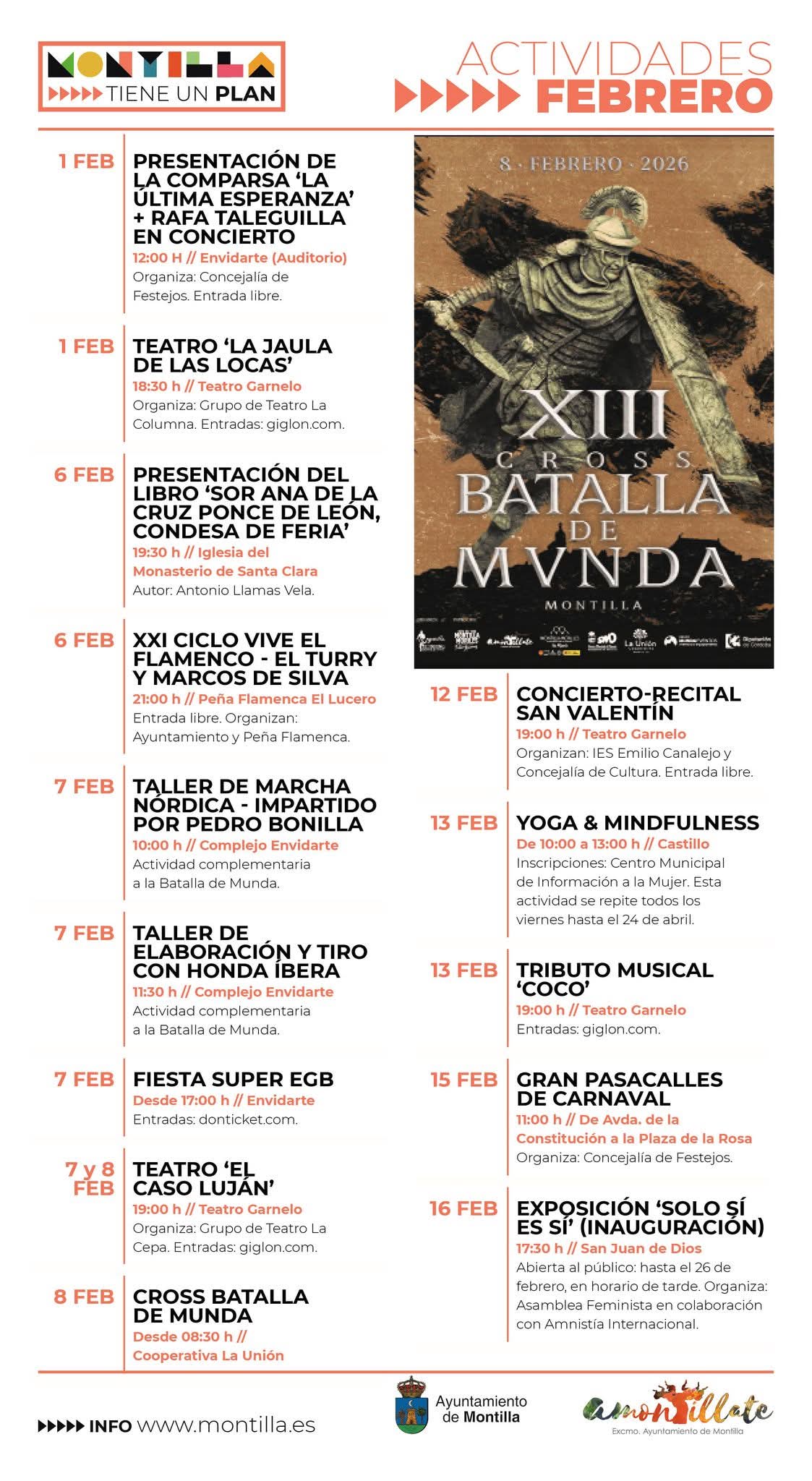 Montilla agenda febrero 3 de febrero de 2026 - 28 de febrero de 2026 08:00 - 17:00 Montilla + Google Map Ayuntamiento de Montilla Montilla