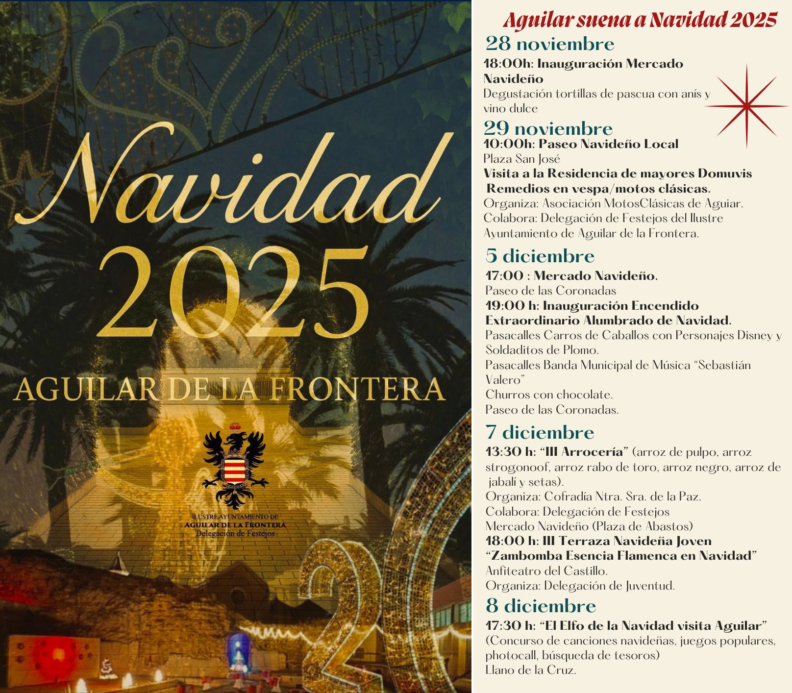 2025-12-05 Navidad en Aguilar de la Frontera Navidad en Aguilar de la Frontera 5 de diciembre de 2025 @ 08:00 - 6 de enero de 2026 @ 17:00 Navidad en Aguilar de la Frontera